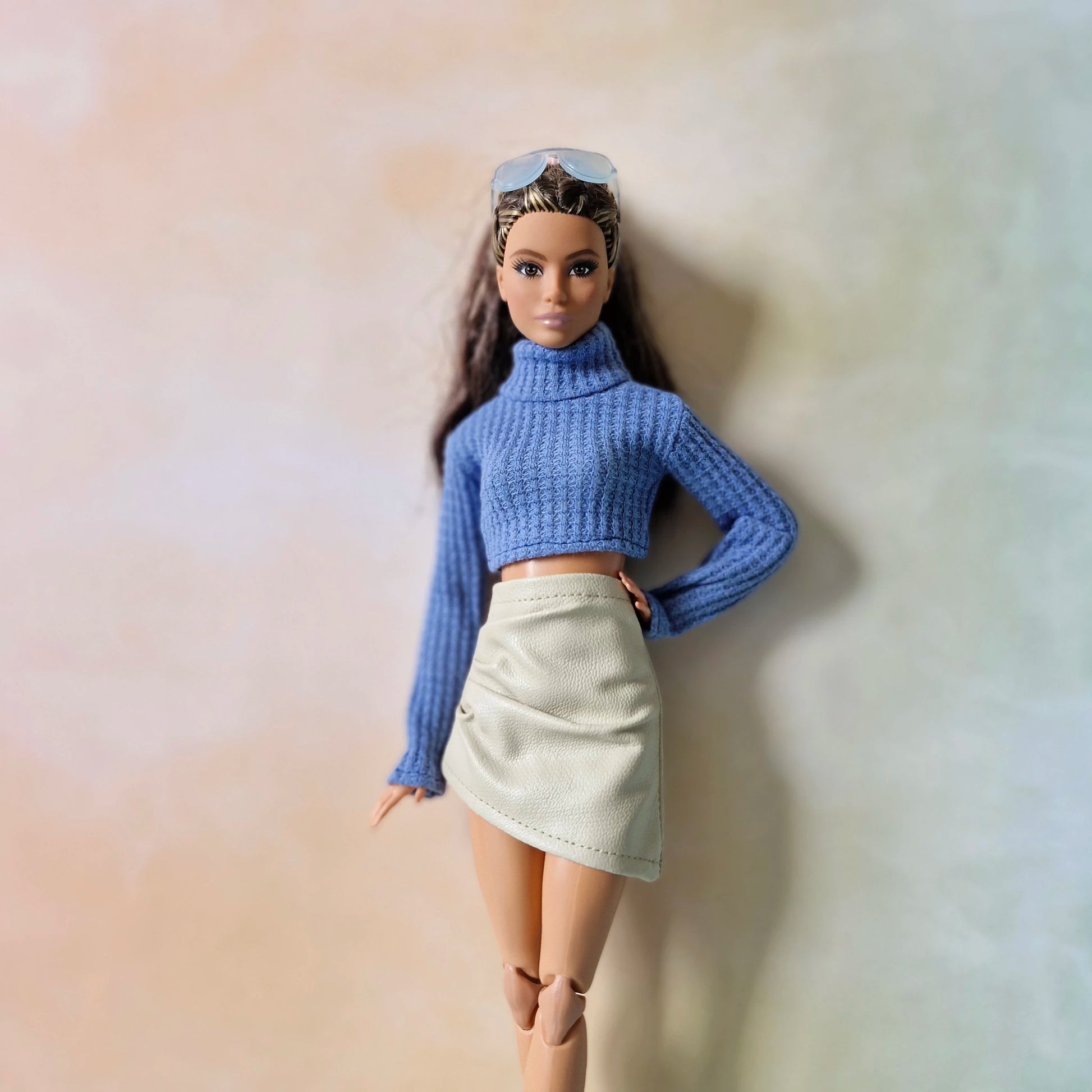 This stylish Barbie and Barbie Curvy outfit set includes 7 cozy turtleneck and ribbed sweaters paired with 6 beautifully crafted faux-leather mini skirts. Each top fits both Barbie regular and Curvy, while the skirts come in 3 designs for Barbie and 3 for Curvy. Perfect for mix-and-match styling, photo shoots, doll photography, or upgrading your doll’s wardrobe. Soft fabrics, trendy colors, and realistic textures bring modern fashion to every doll collection.
